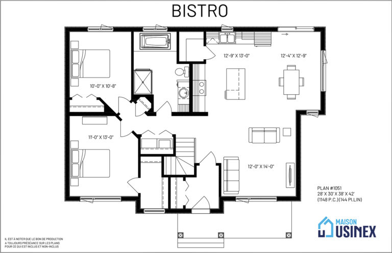 Magnificent single-floor house with a contemporary style, the Bistro has a porch and a closed entrance with a built-in closet. For greater tranquillity, the common living areas are separated from the two bedrooms. The washer and dryer on the ground floor make life easier for the occupants. A walk-in pantry in the kitchen and a walk-in closet in the master bedroom maximize storage space.