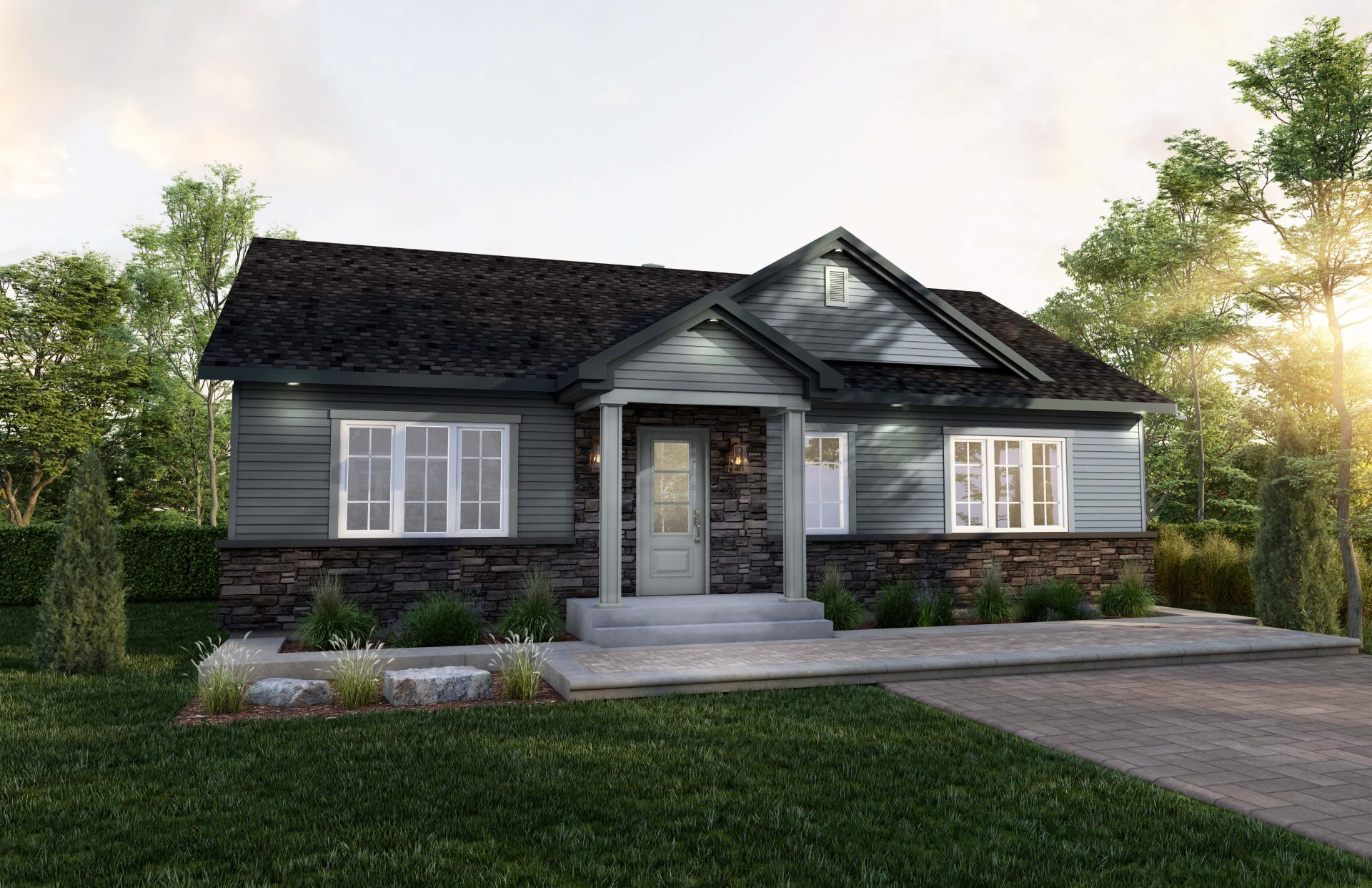 Avec son toit cathédrale, la Bellevue illuminera vos espaces communs et réchauffera votre foyer. Entrée fermée, walk-in chambre des maîtres.